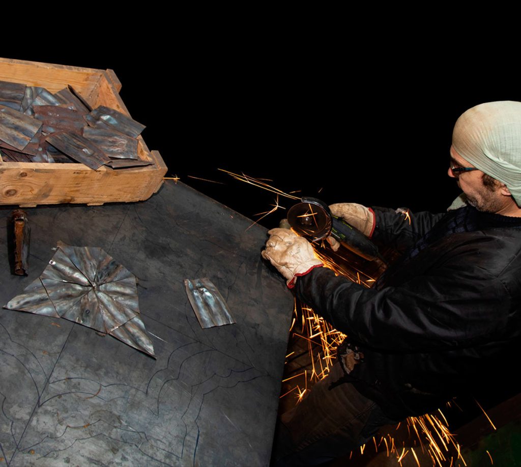 “Fabric” elements made from 30 mm autocannon shell casings, forged into flat segments.
