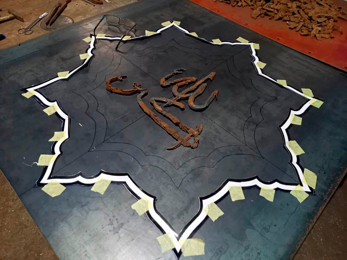 Through this work, metal once intended for destruction is transformed into dhikr — a remembrance of the greatness of Allah. The material traces of war are transfigured into a sacred utterance, affirming the supremacy of the Divine over violence and devastation.