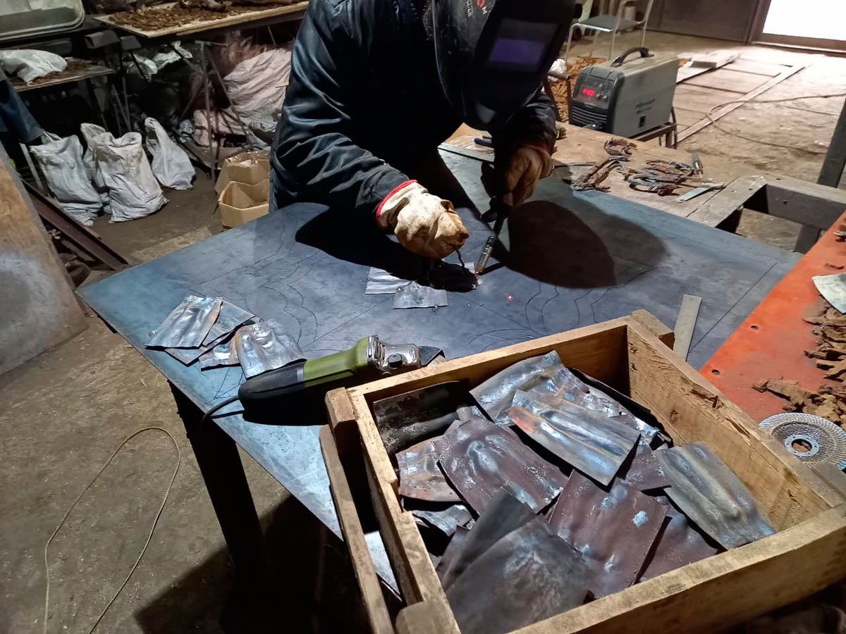 Sergey Melnikoff (MFF) and the renowned Ukrainian master-welder Viktor Bielchyk during the creation of Allah al-Akbar.