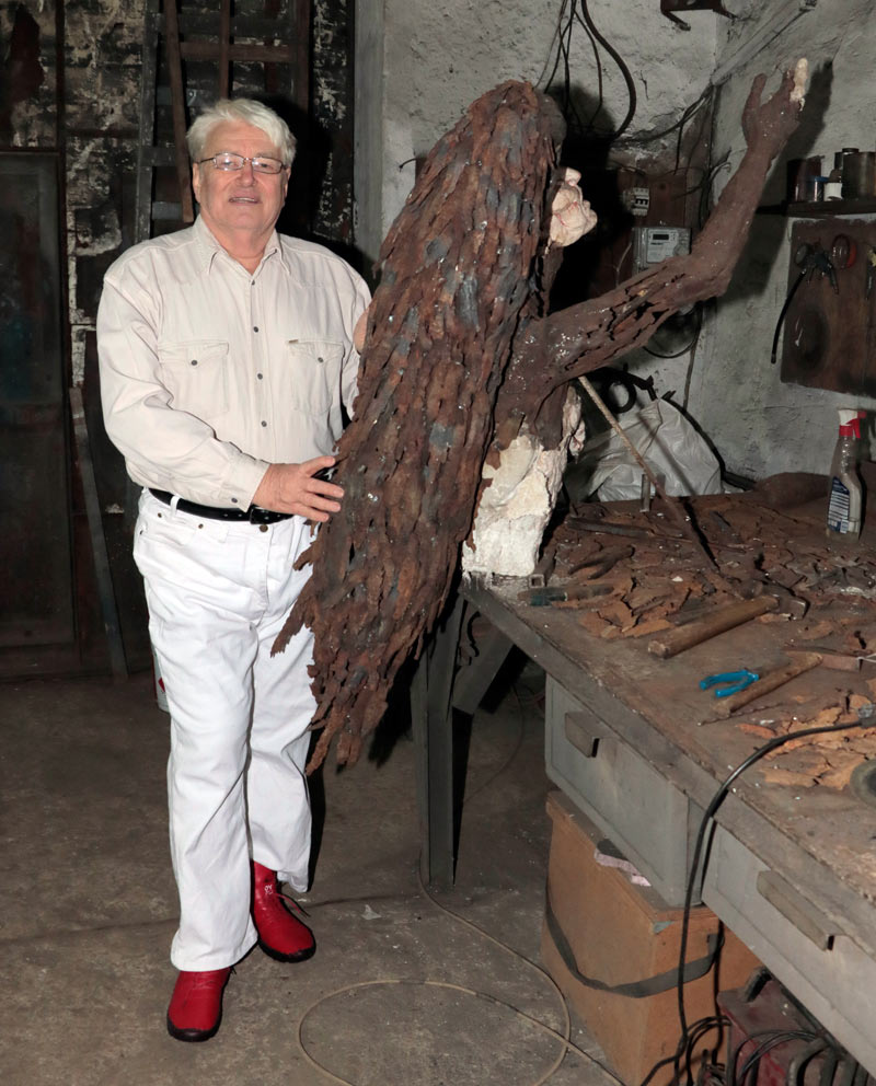 In world art, there have been examples of using wartime artifacts — from transforming weapon debris into decorative objects to creating memorial installations. However, Melnikoff’s works stand out for their exceptional sculptural craftsmanship and monumentality. They go beyond a conceptual statement, transforming fragments into anatomically precise forms — crucifixes, icons, figures of angels, and mythical birds.
