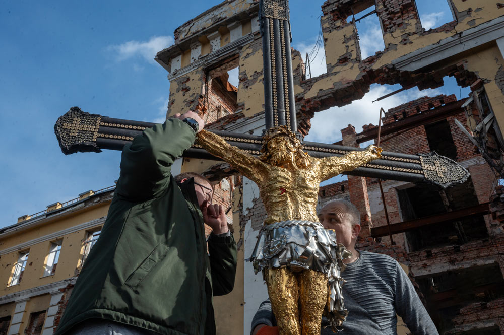 Among his most iconic works are the monumental Golden Crucifixion, the haunting Holy Mandylion, and the symbolic Ukrainian Phoenix—each constructed by hand from thousands of microfragments of battlefield debris. These are not just artworks; they are material prayers. They speak not only of suffering but of spiritual transcendence through art.